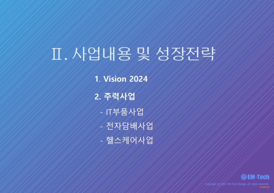 2021년 이엠텍이 실적 발표 이후 보여준 IR자료.