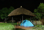 밤엔 창고 같은 곳에서 텐트를 쳤다.