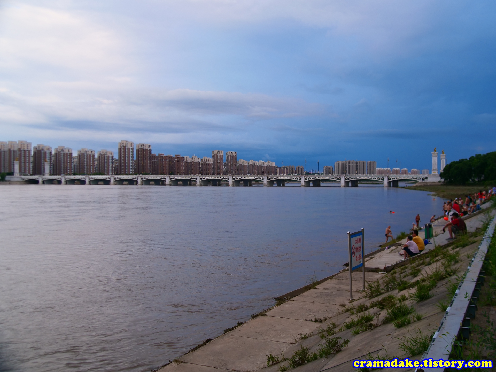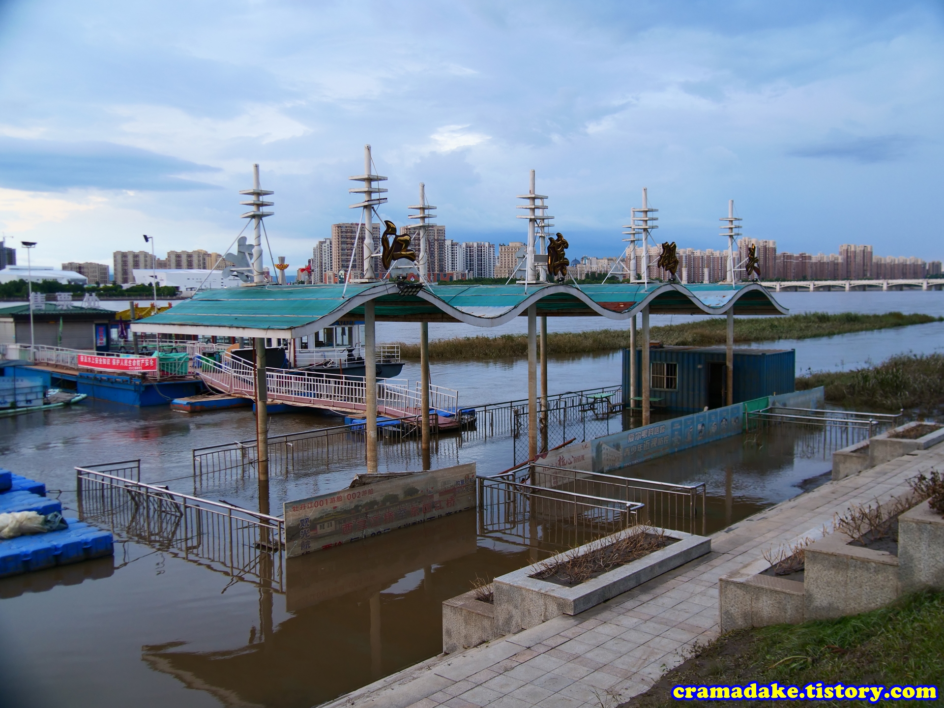 잘 뚫려있는 하얼빈의 지하철을 타고 도착한 태양도. 근처에 내려서 바로 앞 송화강까지 왔습니다.