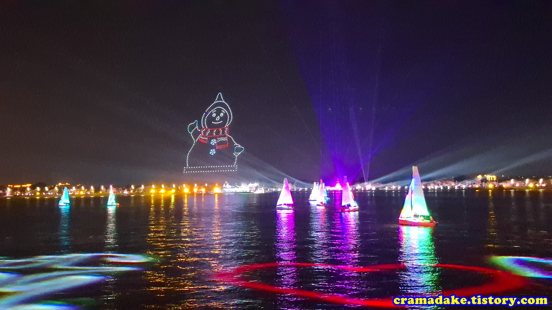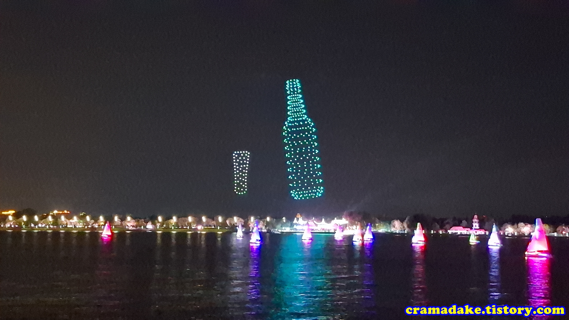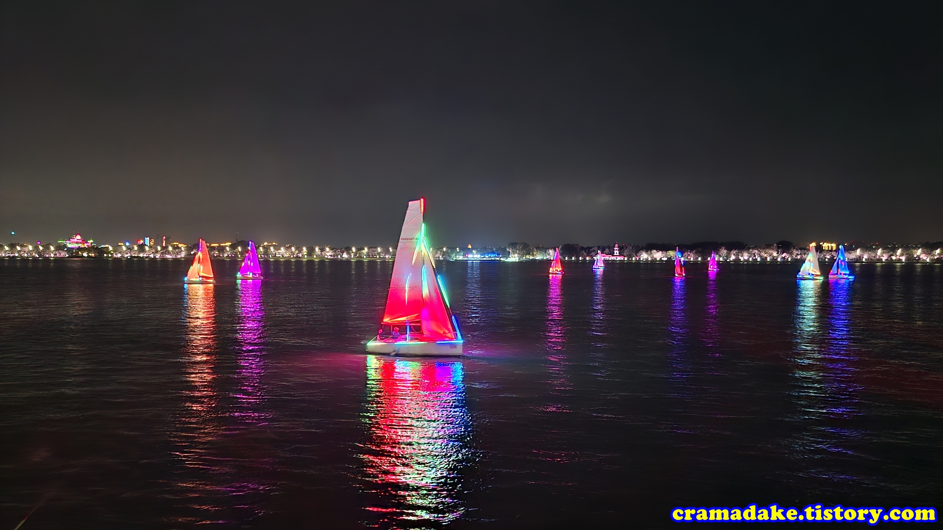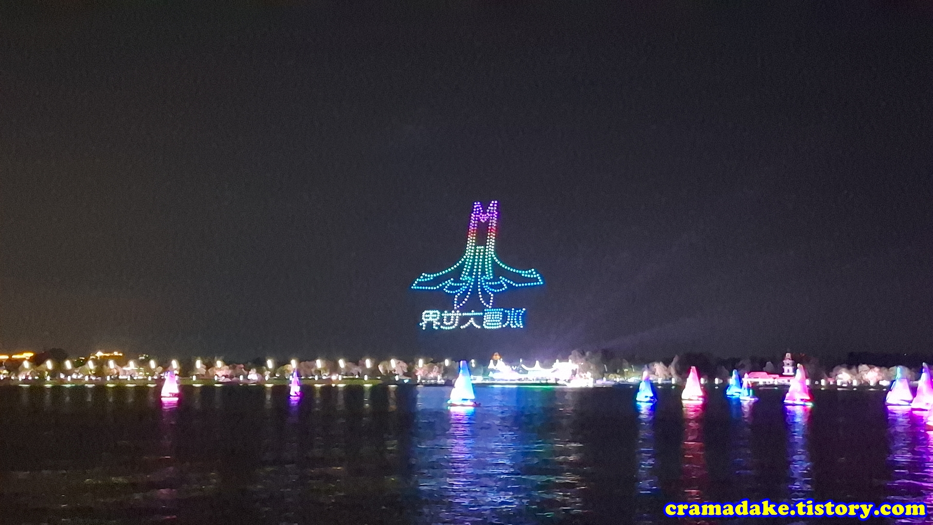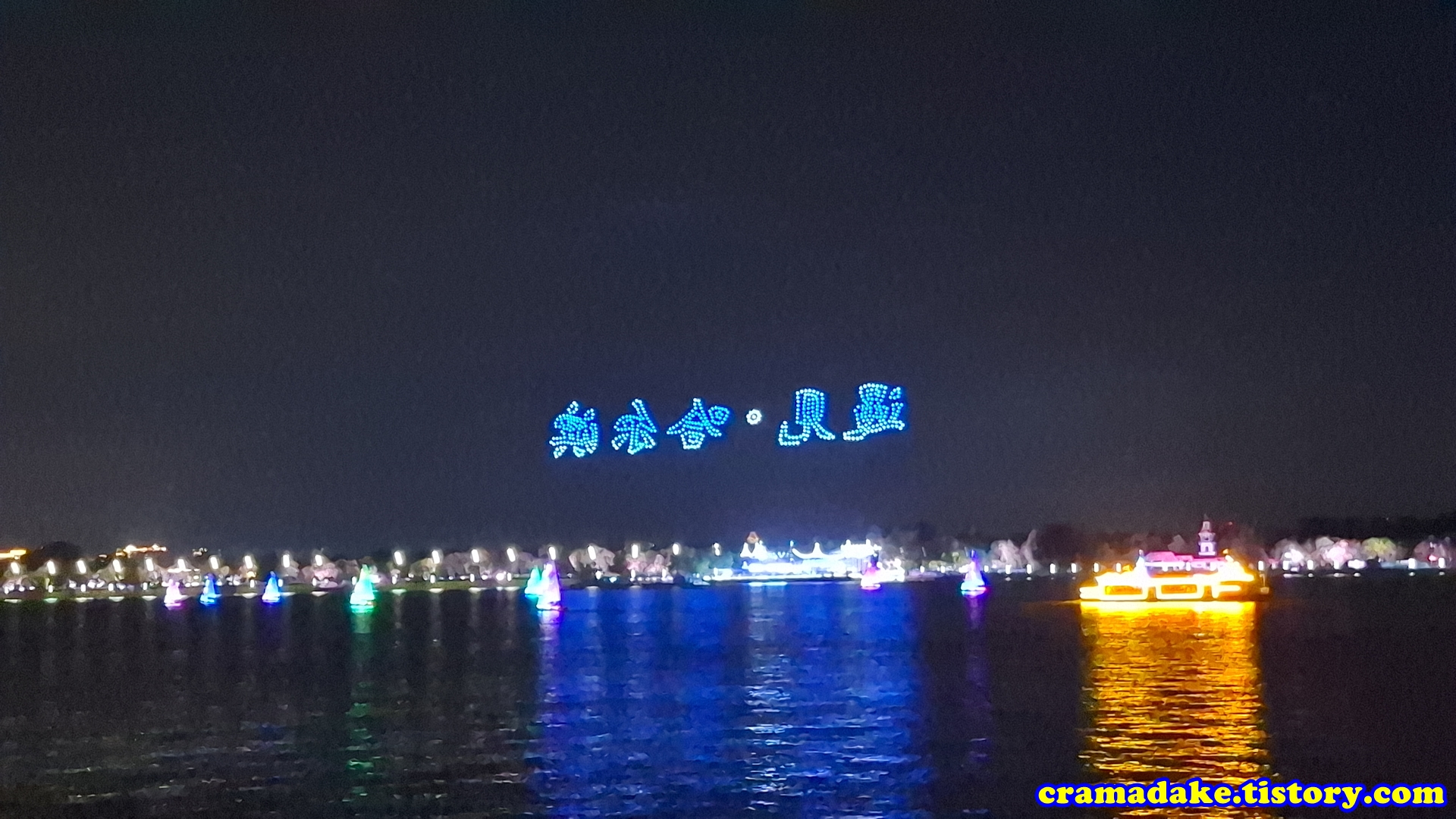높은 분들이 강건너편 태양도 쪽에서 관람하는가 봐요. 저 포함 많은 관광객들이 바글거리는 저희 쪽이 아니라 건너편에서 한자가 보이게 떠 있더라고요. 뭐 그렇다고요.ㅋㅋㅋ