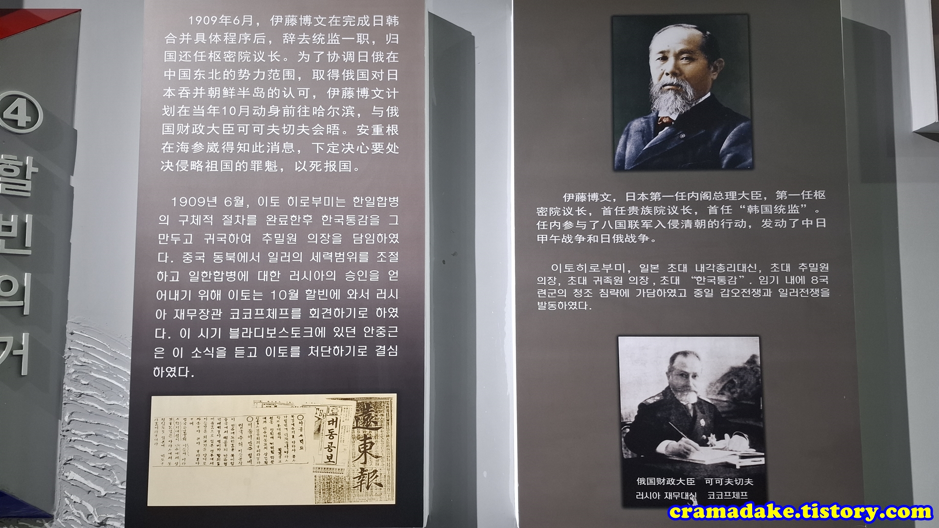 실제 거리를 눈으로 볼 수 있게 해 놨고, 박물관 밖으로 통유리로 실제 이토 히로부미 저격이 일어난 곳을 눈으로 볼 수 있게 해 놨습니다.