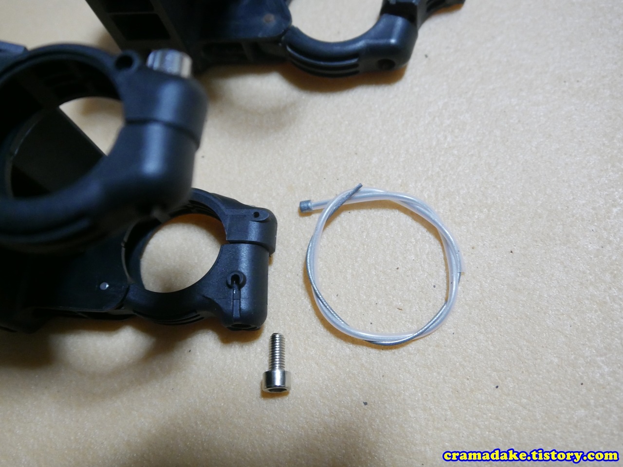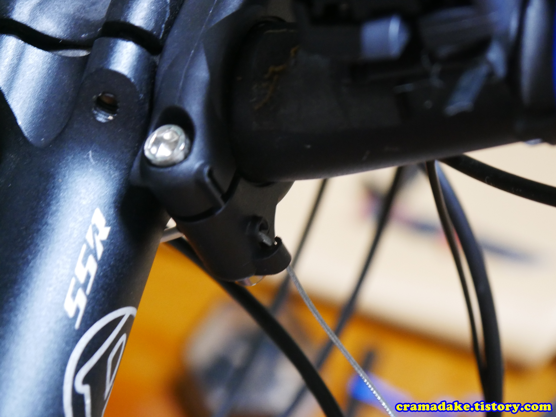 짧은 나사는 위에서 한번 조아주고, 왼쪽에서 연결한 케이블은 연결후 아래 스템라인을 지나 핸들바백 오른쪽으로 연결해 나사로 조아야 한다.