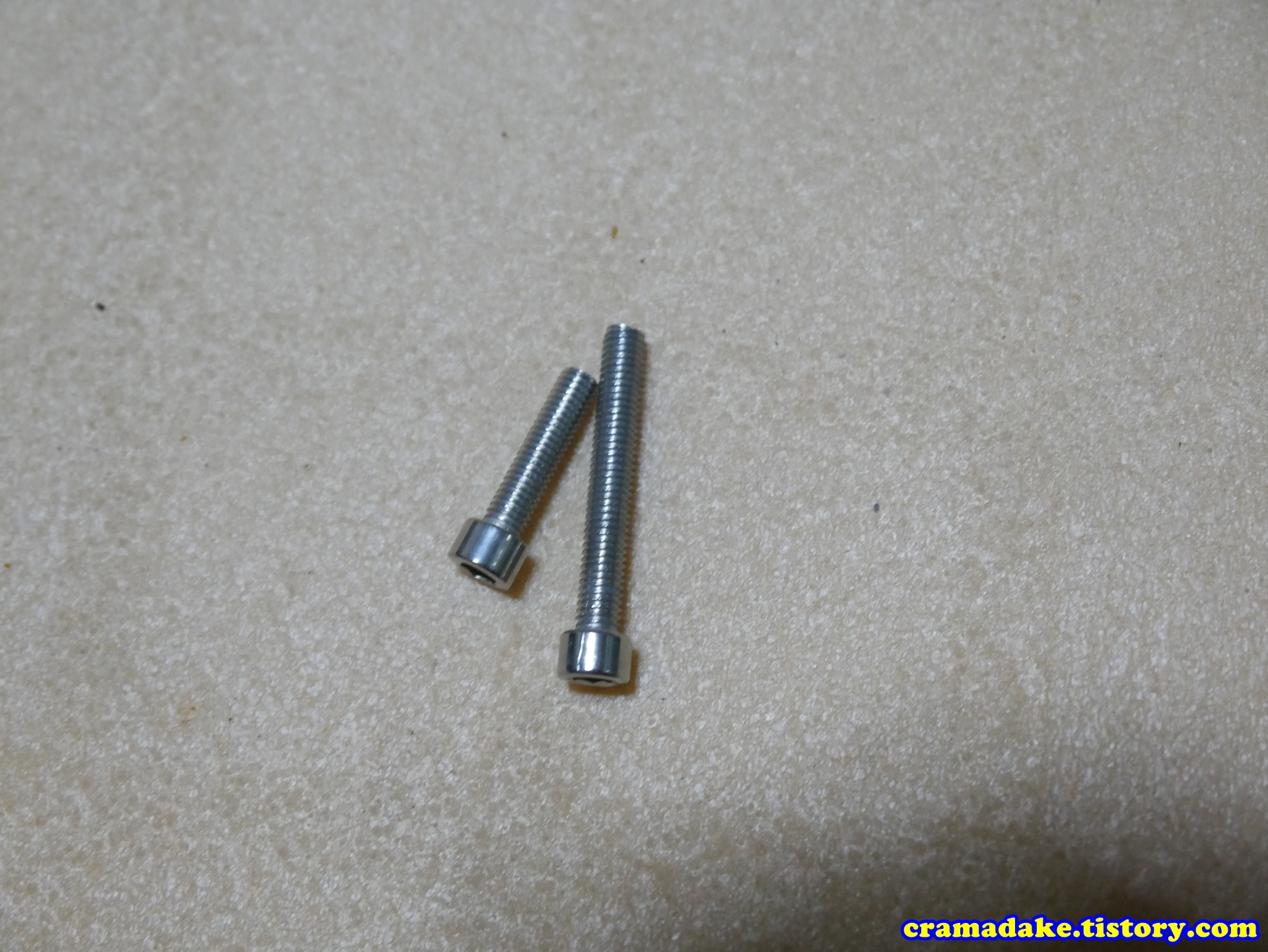 * 참고로 오른쪽 나사는 왼쪽과 같은 길이의 긴 것으로 장착해도 파지 강도는 상당히 세다. (세계일주 동안 1개만으로 그렇게 써 왔다.)