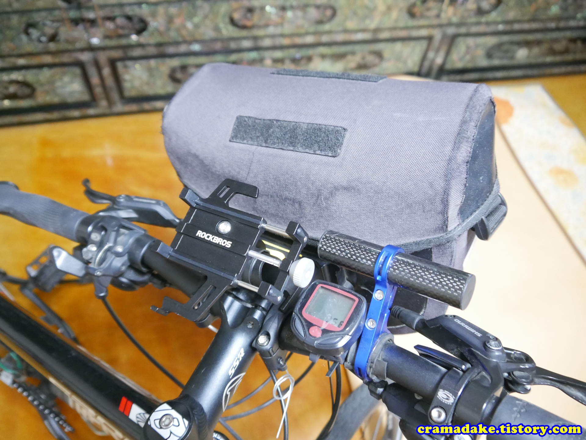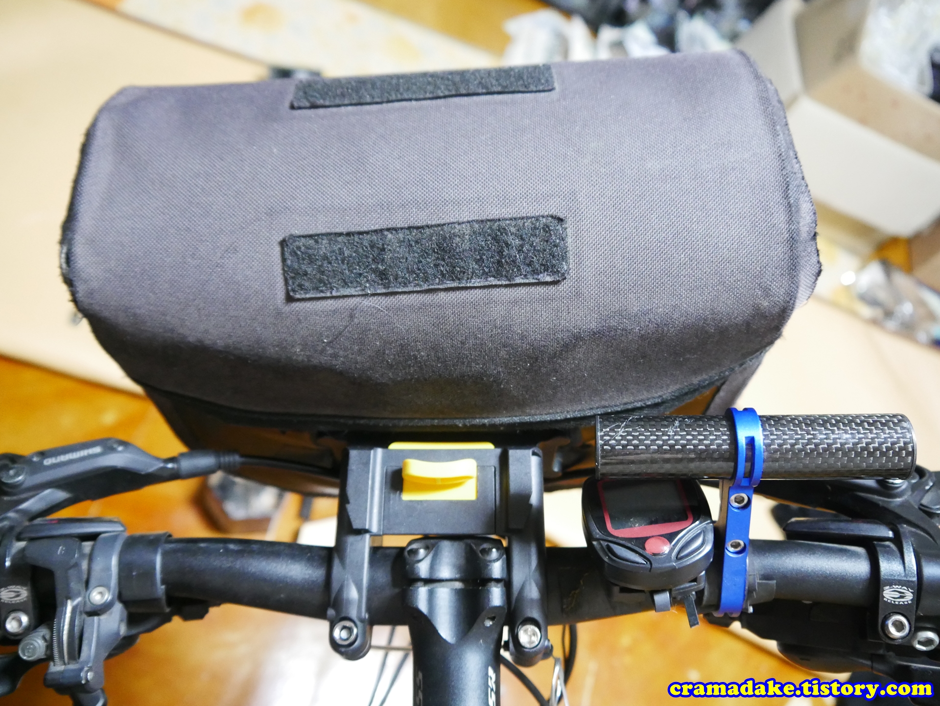 저 가방은 10년전 태국에서 뺑소니 사고 당하고 새 자전거 구입시 구입한 가방이다. 2번째로 산 자전거 가방을 도둑 맞았을때 가방만 덜렁 남아서 토픽 핸들바 마운트 세트로 개조해서 쓰고 있는게 지금까지 왔다.