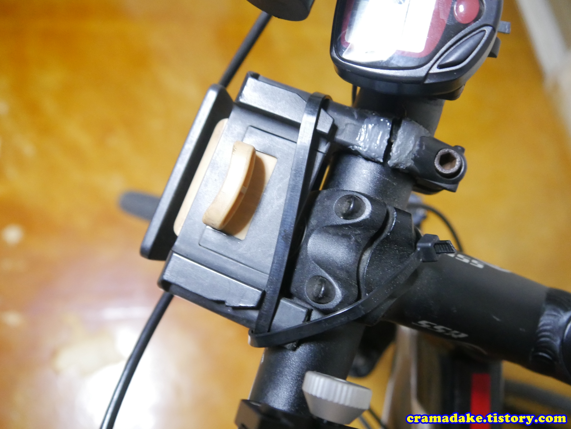 스마트폰 거치대 마운트 세트에 함께 동봉된 짧은 나사로 교체.