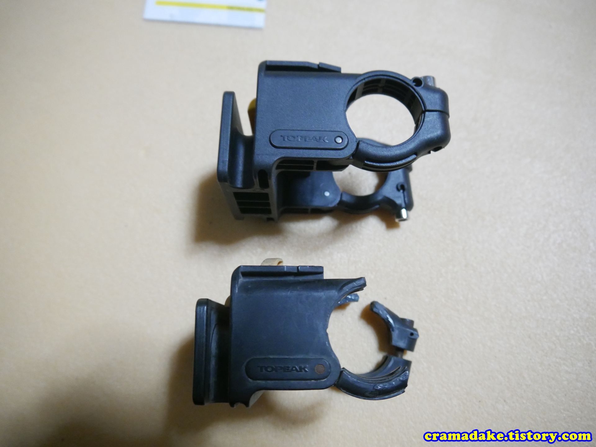 토픽 핸들바백 마운트의 이빨부분은 플라스틱이라 무조건 세게 조으면 부러진다.